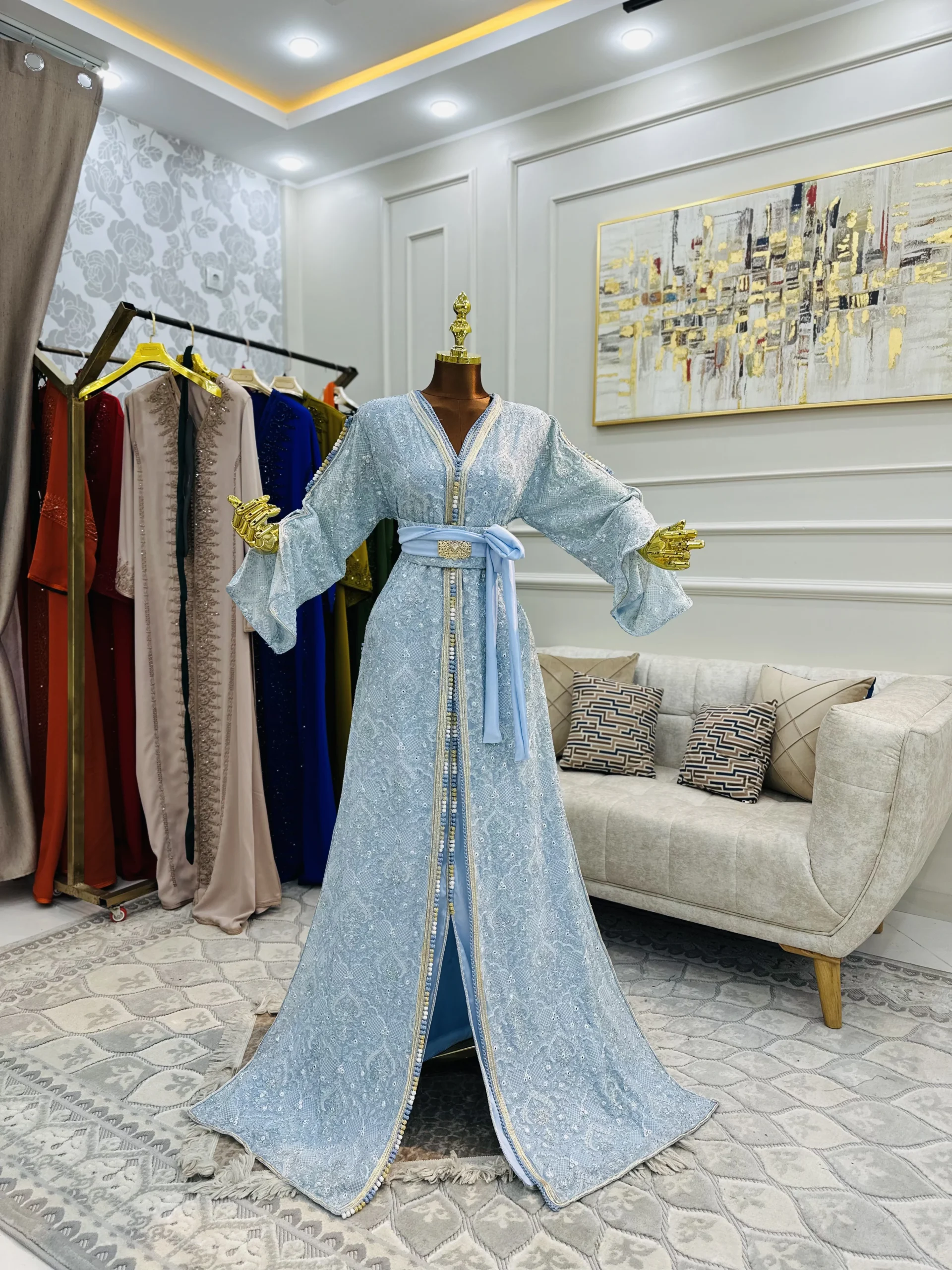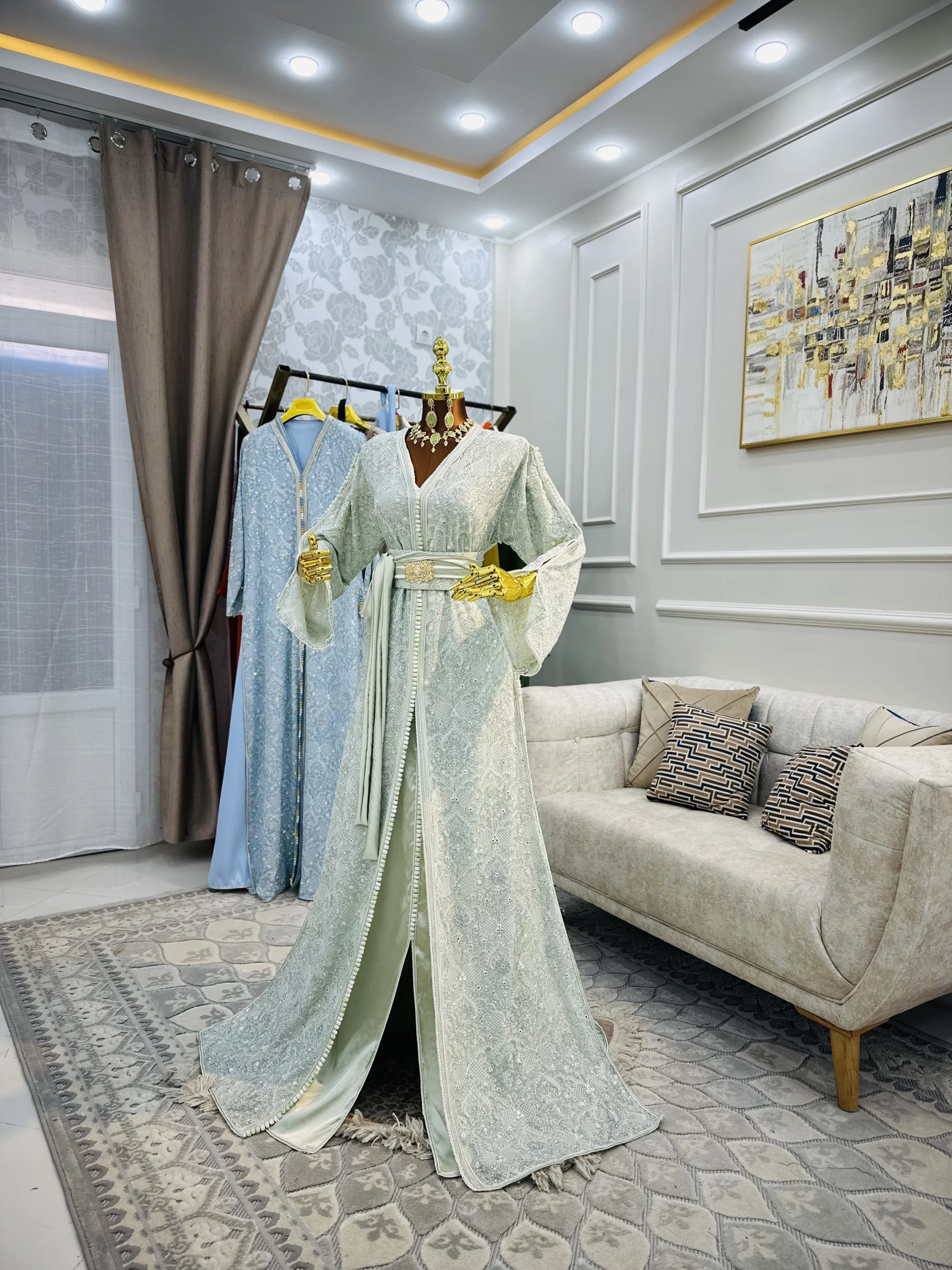 قفطان أنيق بتصميم يجمع بين الفخامة واللمسة التقليدية الراقية، مصنوع من خامات عالية الجودة تمنحك راحة في اللبس ومظهرًا مميزًا في كل مناسبة. يتميز بتفاصيل دقيقة وتطريز جذاب يبرز جمال التصميم ويمنحك حضورًا لافتًا. مثالي للأعراس، السهرات، والمناسبات الخاصة.